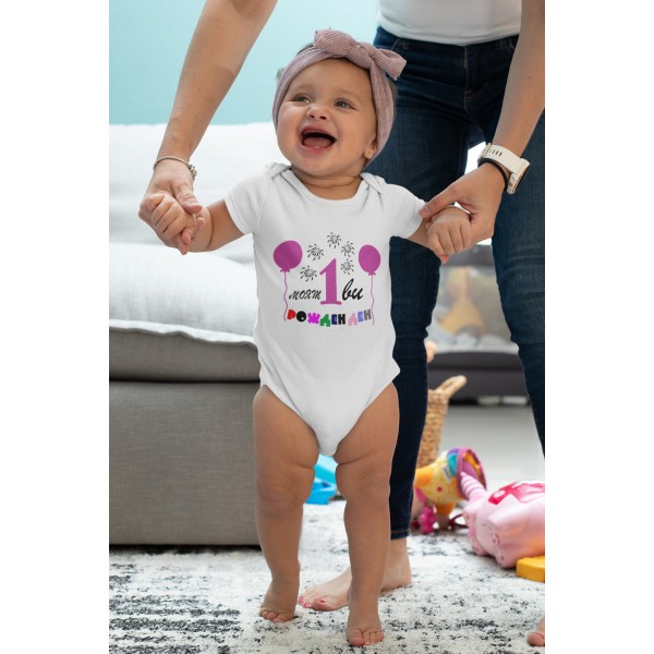 Бебешко боди с надпис – Моят Първи Рожде Ден (балони)