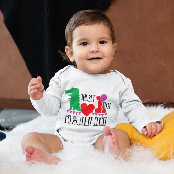 Бебешко боди с надпис – Моят Първи Рожде Ден (динозавър)