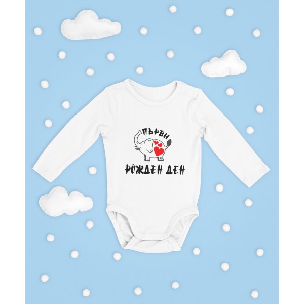 Бебешко боди с надпис – Първи Рожден Ден (слонче)