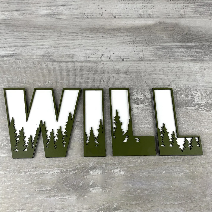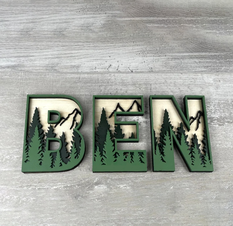 Тези уникални трислойни букви съчетават красиви горски и планински мотиви, за да внесат природа и спокойствие във всяко пространство. Изработени от дърво, тези букви включват детайлни слоеве, които пресъздават горски пейзажи с дървета, хълмове и планини, като идеално отразяват красотата на природата. Създадени за тези, които обичат природата и искат да създадат уникален декор в домовете си или за тематични събития, тези букви ще впечатлят със своята сложност и стил.