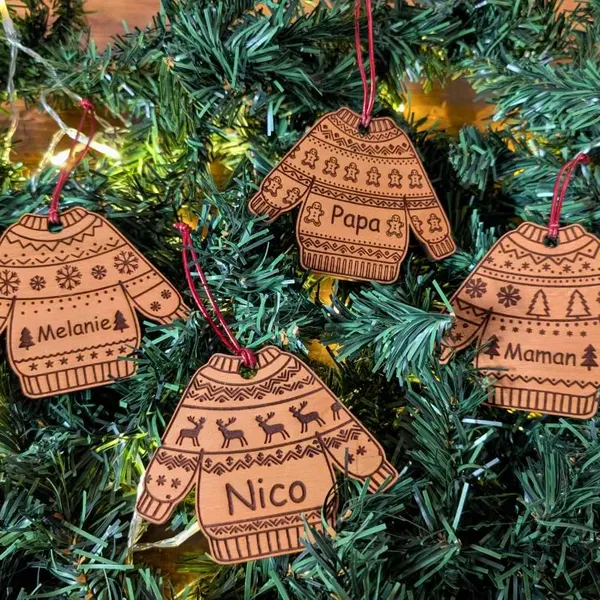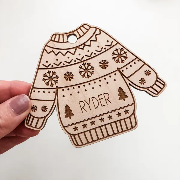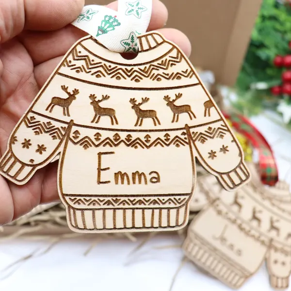 Добавете топлина и уют на елхата с нашето очарователно коледно украшение във формата на пуловер! Изработено от естествено дърво и гравирано с прецизен лазер, то е чудесен начин да направите празниците още по-лични.