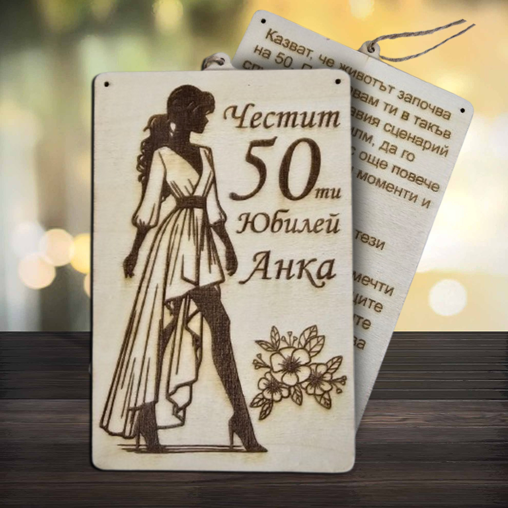 🎀 Дървен плик за пари за юбилей – елегантен и запомнящ се подарък за специална жена