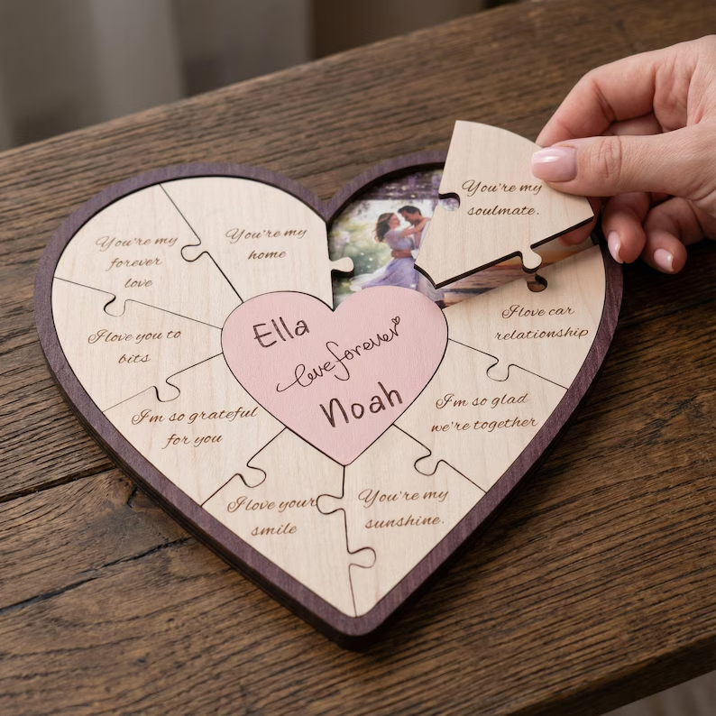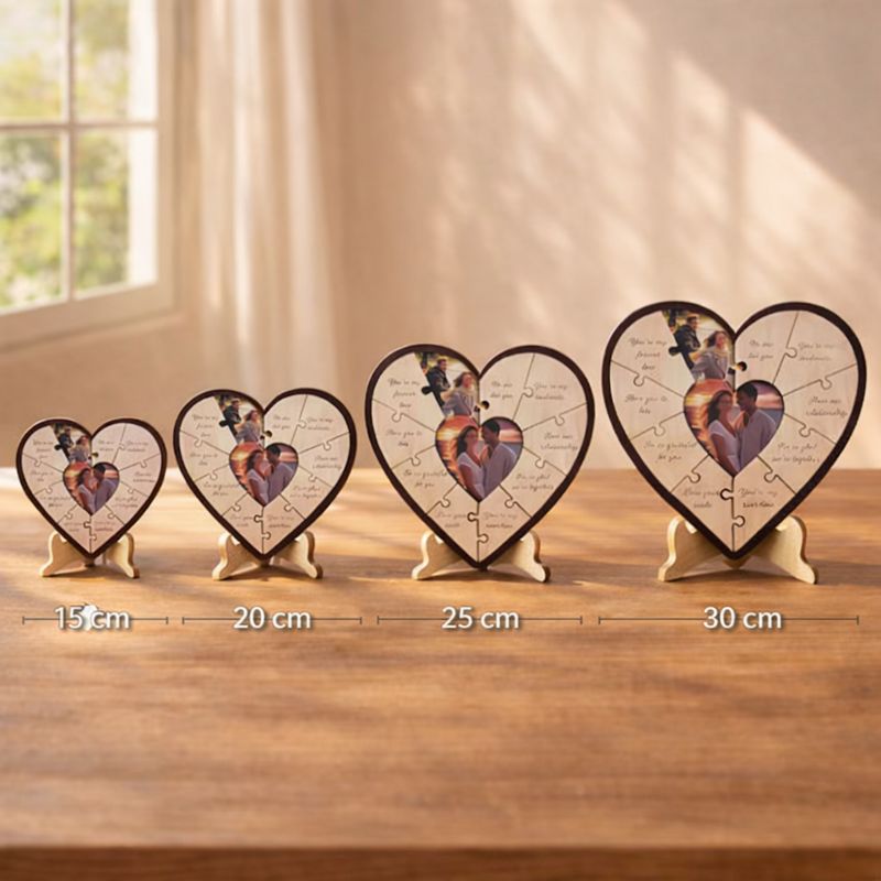 Този персонализиран пъзел във формата на сърце е създаден, за да разкрие емоция стъпка по стъпка. Всяко парче носи любовно послание, а при разглобяването на пъзела постепенно се разкриват вашите снимки, превръщайки момента в истинско изживяване.