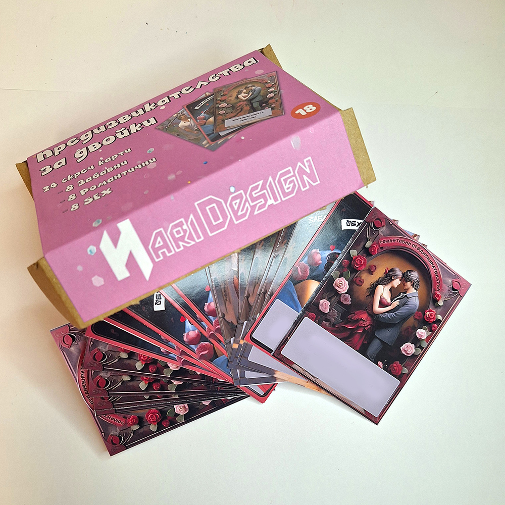 Нашата игра за двойки не е просто комплект скреч карти; това е интимно приключение, направено с любов и внимание към всеки детайл. Включете се във вълнуващо пътешествие към по-близката и по-силна връзка, докато изпълнявате предизвикателствата и създавате незабравими спомени.