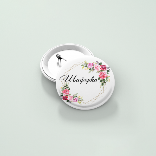 Значките са тип копче с размер 32 мм – удобен и универсален формат, който се носи с лекота през целия ден или вечер. Лесно се закачат към рокля, сако, жилетка, чанта или шал, без да утежняват облеклото. Подходящи са както за самото събитие, така и за снимки, игри и спомени от моминското парти или сватбения ден.